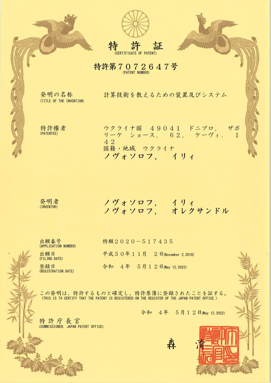 Ten patent uznaje innowacyjne urządzenie e-soroboom, które pozwala doskonalić swoje umiejętności księgowe z dużą dokładnością i szybkością. Zarejestrowany w Państwowym Rejestrze Ukrainy wynalazek otwiera nowe horyzonty w edukacji i działaniach analitycznych, umożliwiając użytkownikom stosowanie tradycyjnych metod obliczeń w formacie elektronicznym.